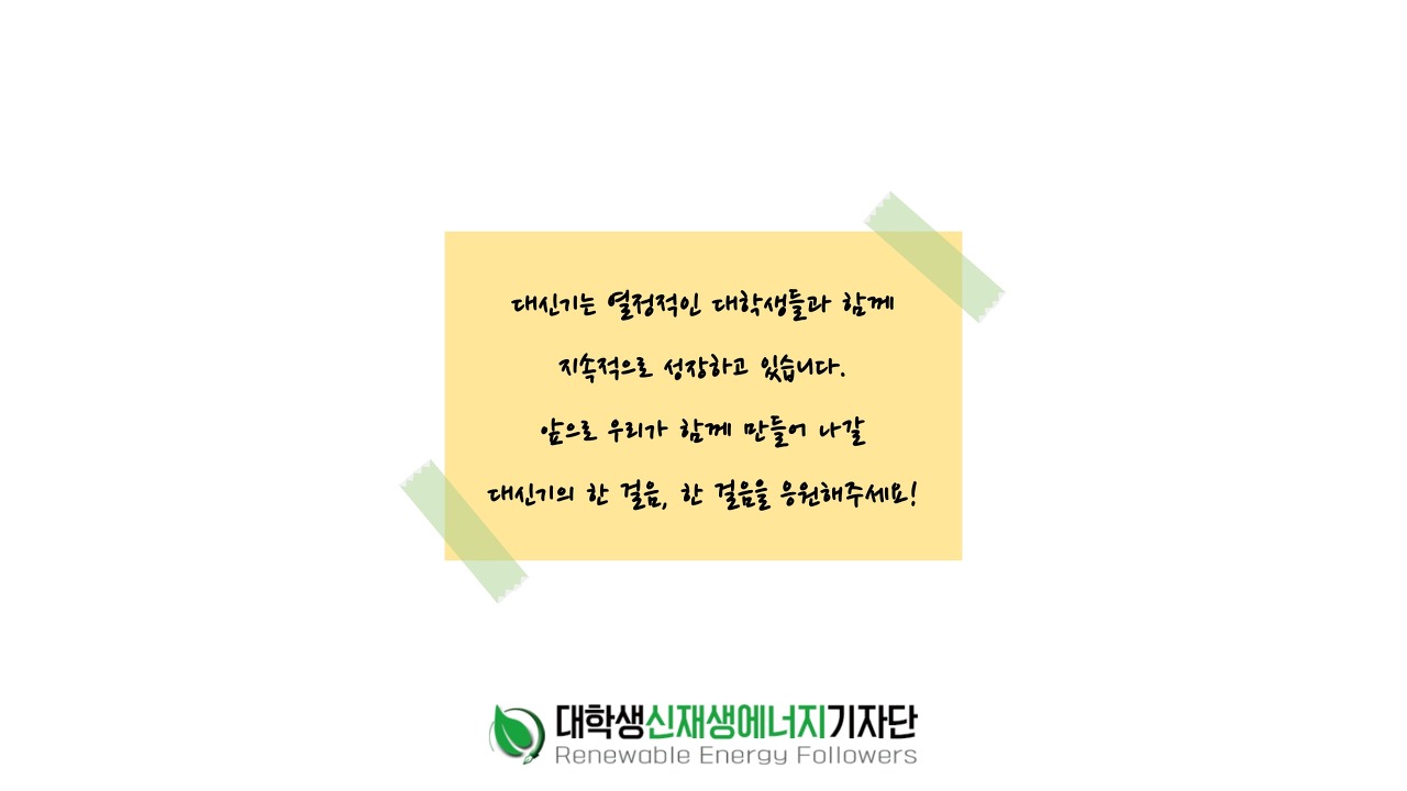 대학생신재생에너지 기자단 홈페이지에 방문해주신 모든 관심에 감사드리며,