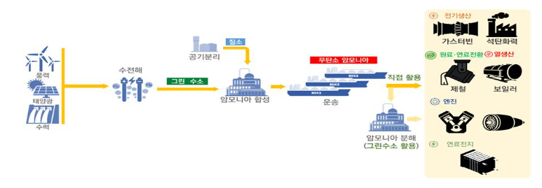 [자료2. 그린 암모니아의 생산 및 활용 과정]