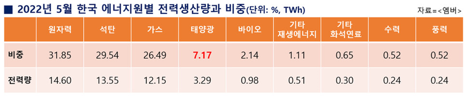 2) 이근영, “한국, 태양광 발전 7% 넘었다…한•일 5월 태양광 ‘최고치’ 기록, 한겨레, 2022.08.22 https://www.hani.co.kr/arti/society/environment/1055687.html