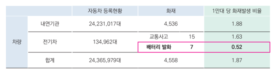 [자료 3. 내연기관 자동차 대비 전기차 화재 발생 비율(2020년 기준)]