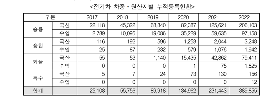 [자료 1. 전기차 차종∙원산지별 누적 등록 현황]