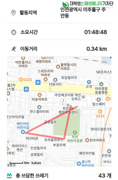 [자료 8. 쓰레기 수거 동선 (지구쓰담 앱 활용)]