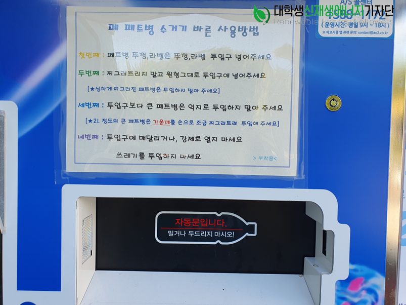 투명 페트병 별도 분리배출 제도가 시행되면서, 무인 회수기의 설치가 증가했다. 그러나 현재 무인 회수기에서 자체적으로 페트병의 유·무색 여부와 오염도를 측정하는 기술은 탑재되어 있지 않다. 이에 따라 무인 회수기에 에러가 발생하는 경우가 있다. 따라서 이런 부분을 기술적으로 보완할 필요가 있다.