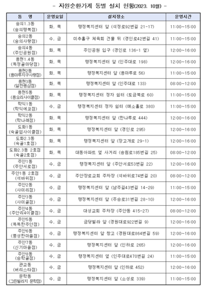 자원순환가게는 미추홀구의 총 23곳에 설치 및 운영 중이다.