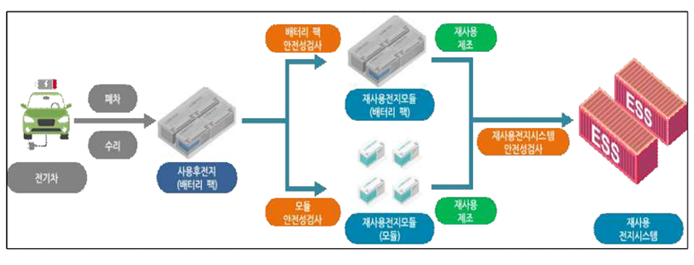 2) 산업통상자원부, "재사용전지 안전성 검사제도 본격 시행", 2023.10.18., https://www.motie.go.kr/kor/article/ATCLa3d66de4c/167953/view