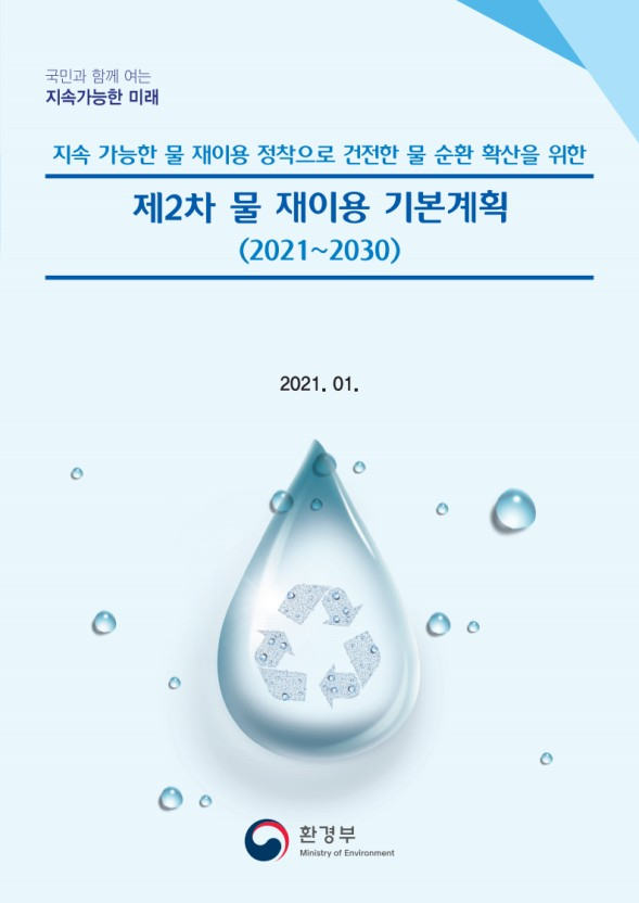 국내 물 재이용은 ‘제 2차 물 재이용 기본계획(‘21~’30)’을 통해 하수처리수의 장외 재이용률 향상, 공업용수의 하수처리수 재이용률 확대, 물 재이용으로 하천 건천화 개선을 목표로 지속가능한 물 재이용 정착으로 건전한 물 순환 확산을 달성하고자 한다. 구체적인 내용은 정책정보포털에 있는 물 재이용 기본계획에서 확인하길 바란다.