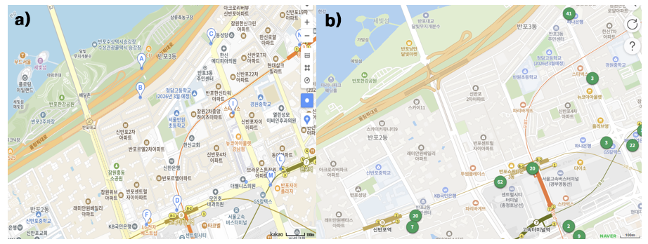 [자료 10. 반포 한강공원의 자전거 대여소(a)와 따릉이 대여소(b)]